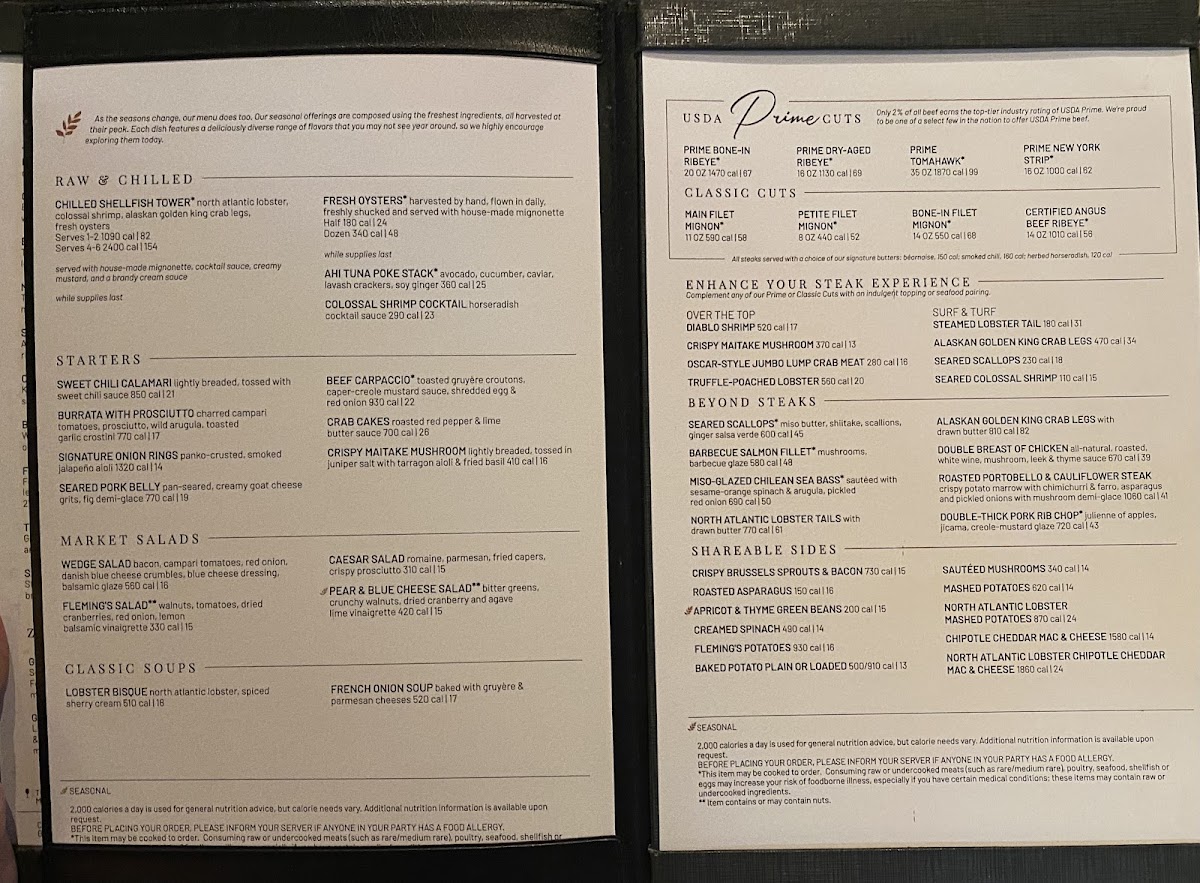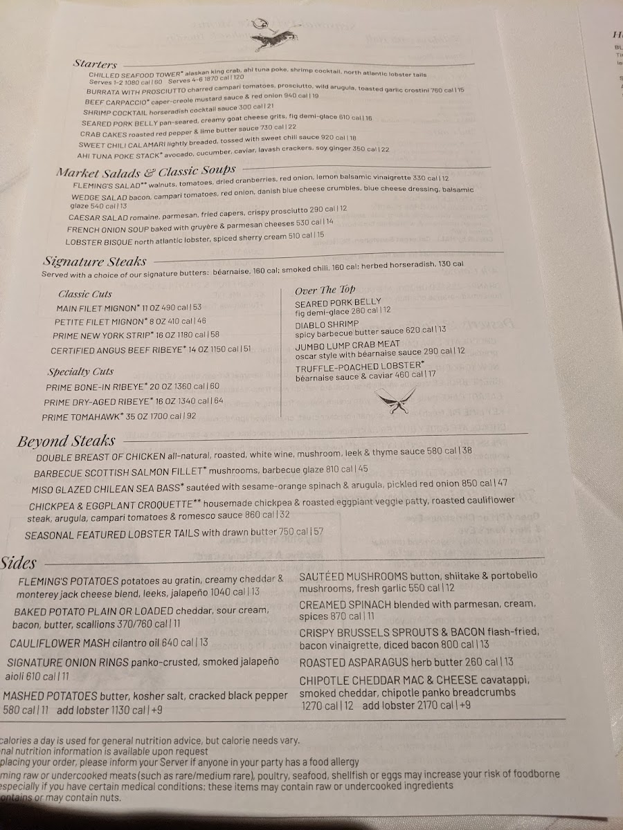 Welcome to Fleming’s Prime Steakhouse & Wine Bar - Naples, where culinary excellence meets an inviting ambiance. This premier steakhouse offers an extensive menu, showcasing an array of delectable choices that cater to every palate.